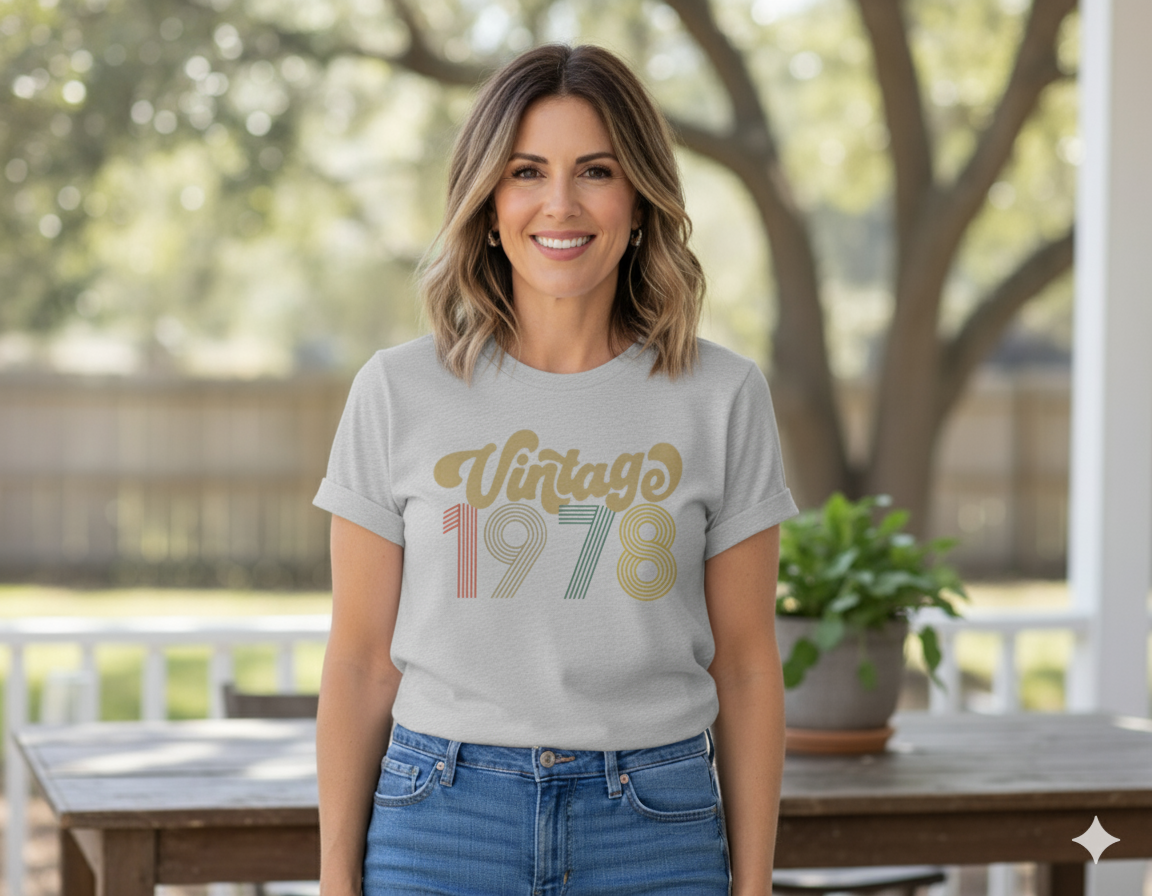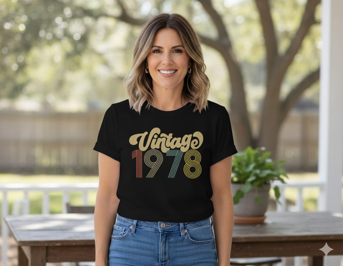 - 1978's vintage t-shirt with original lettering print, for a birthday gift.